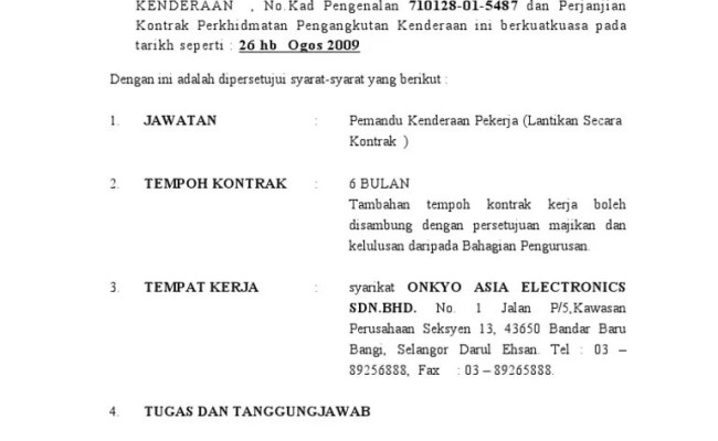 Contoh Surat Perjanjian Kontrak Kerja Malaysia Otosection